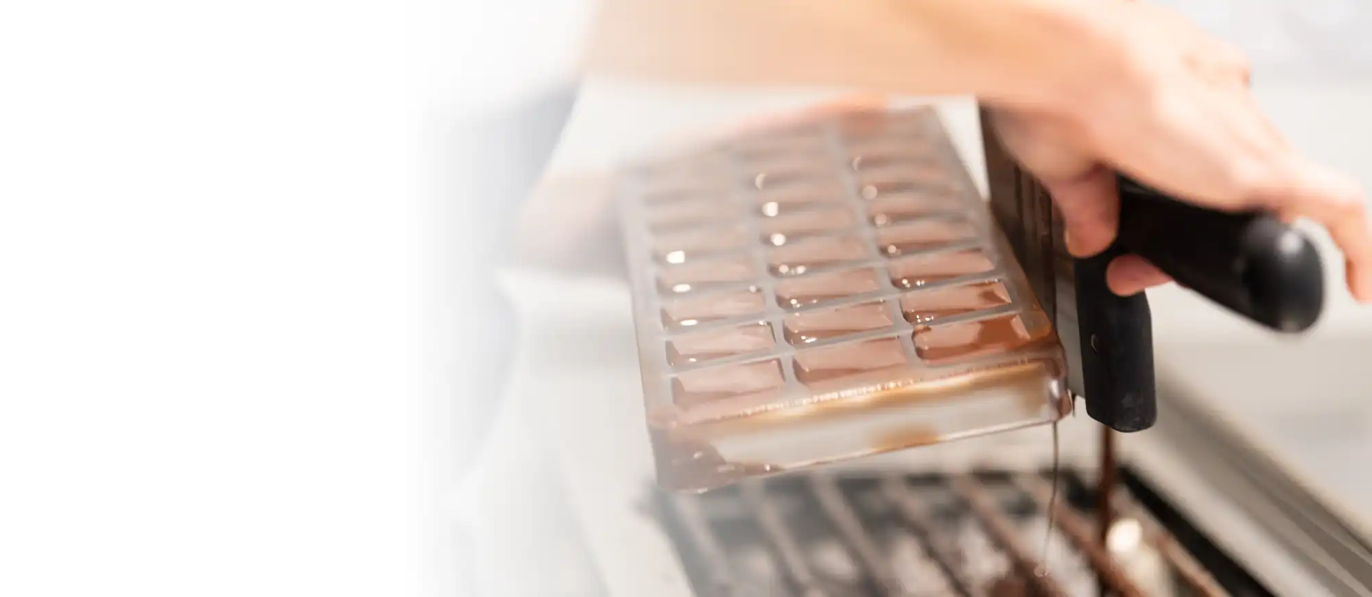 Les moules, qu'ils soient destinés aux tablettes, aux bonbons ou aux sujets moulés, sont minutieusement préparés pour accueillir le chocolat. Chaque détail est pris en compte pour garantir une finition parfaite à chaque pièce.