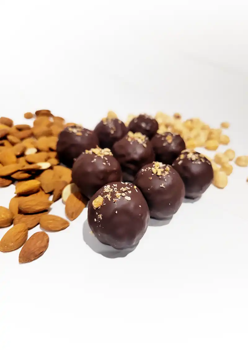 Au cœur de l'artisanat chocolatier des Petites Folies, réside un engagement inébranlable envers la qualité et l'éthique, incarné par Gaëlle à travers son choix méticuleux des matières premières. Chaque ingrédient est soigneusement sélectionné pour sa provenance, sa qualité biologique et équitable, et sa capacité à sublimer nos créations.