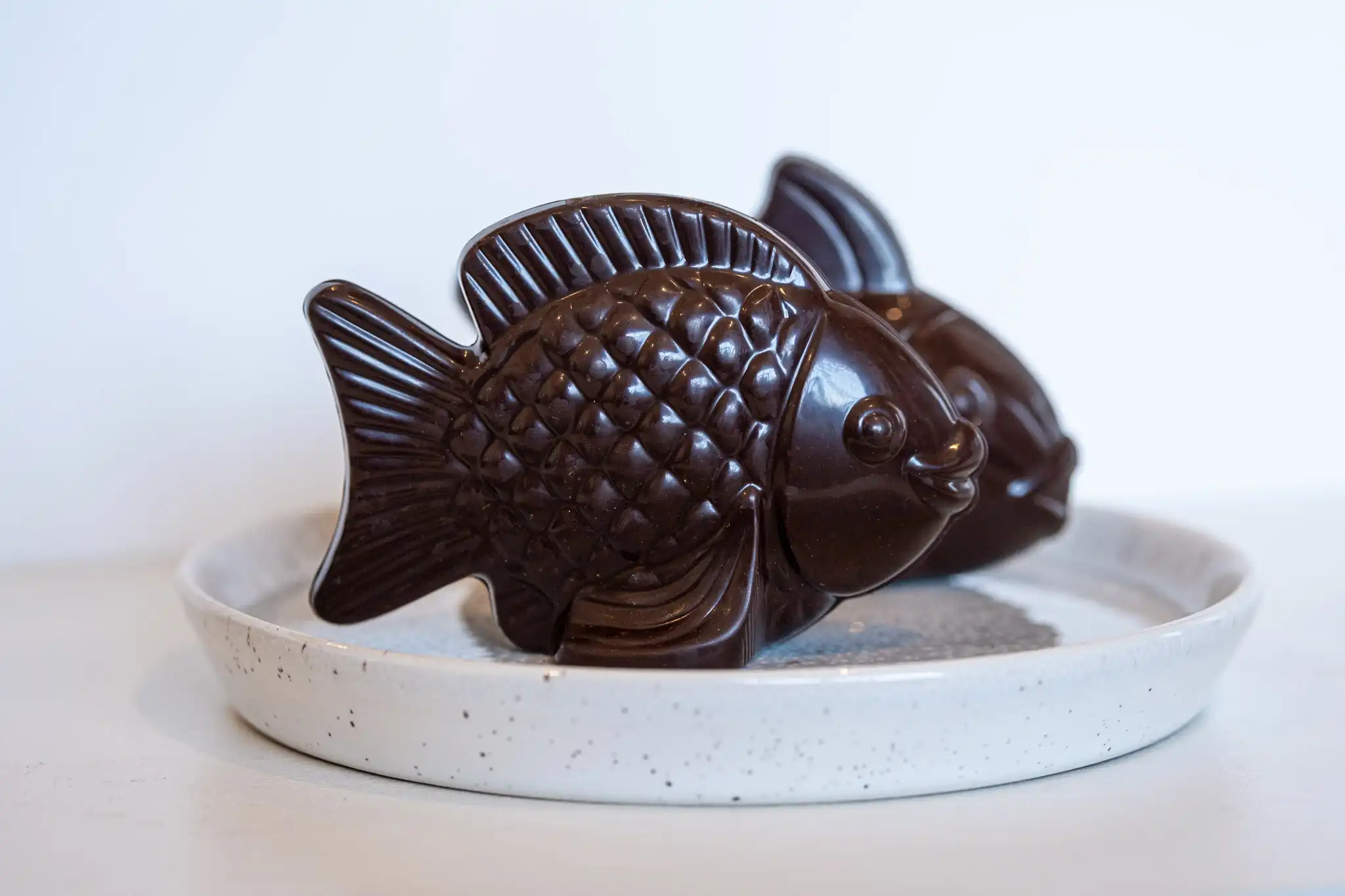 Chaque moulage, qu'il s'agisse de sujets fantaisistes ou de motifs élégants, est façonné à partir du chocolat équitable.
